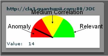 1: Anomaly Meter A user will observe the test process for about 100 real-time inputs. Each input (sequence) represents a vessel’s name or real-time location from the SPAWAR MDA DS COI. The input is checked against the patterns in the CLA network to see if anything is of interest or relevance to the vessel or its location; for example, was the vessel seen anywhere else before? Were there any incidents/activities/events reported in the vessel’s location? A user will compare samples of the categorizations (i.e. anomaly, relevant, medium correlation or irrelevant) from the CLA network with his/her own categorization. |